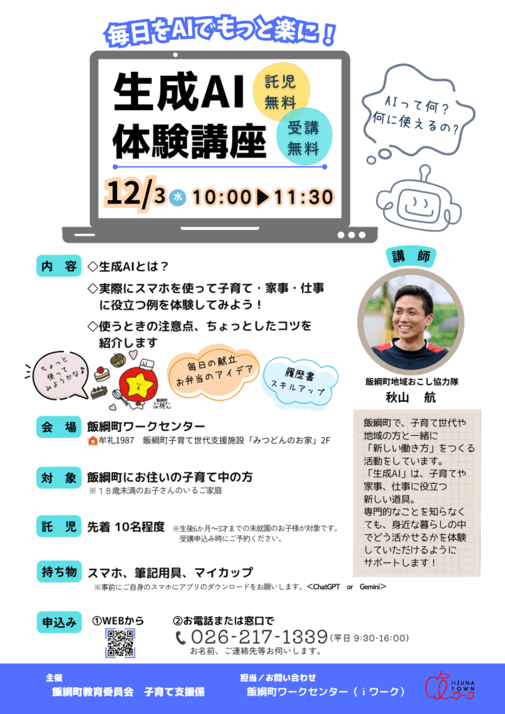 今回は生成AI体験講座を開催します!