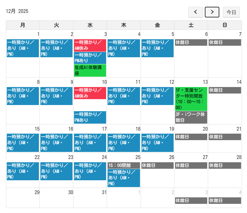 📍12月26日(金) ~ 2026年1月5日(月) まで休館となります。