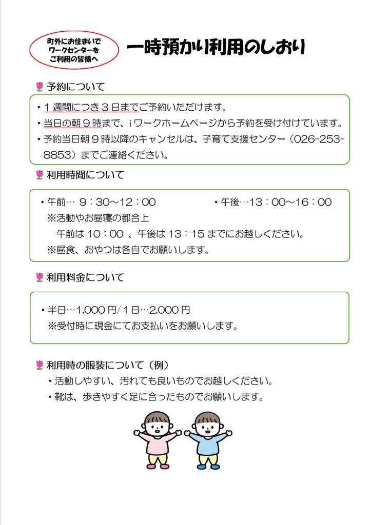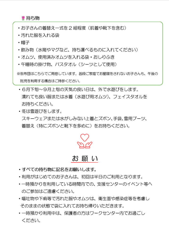 令和7年4月からの、ワークセンター利用時の一時預かりの利用方法についてご案内します🔊