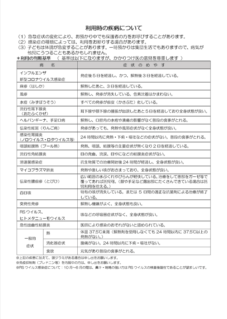 🟨共通事項 🐣持ち物や疾病について🐣